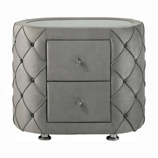 ACME East$272.64| /ACME Naima Nightstand, Gray, 26" x 17" x 26"H, 44lbs. Features: - 3 Drw (Jewelry Drawer) - Casegood Drawer: GLIDE Center Metal, Dovetail English Fr...