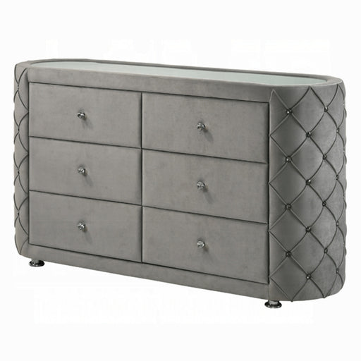 ACME East$758.28| /ACME Naima Dresser, Gray, 63" x 17" x 39"H, 137lbs. Features: - 9 Drw (Jewelry Drawer) - Casegood Drawer: GLIDE Center Metal, Dovetail English Fron...
