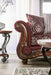 This lavish sofa and loveseat combo features rolled arms highlighted by faux wood carved detailing and classic bun feet in a walnut finish. The frame is wrapped in deep burgundy chenille--a bold choice for a design that's already dramatic. Mesmerizing silver embroidery and patterns are found on accent pillows and one side of the comfortable, reversible cushions. Every single detail comes together for a truly opulent, traditional design.