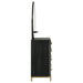 Woven rattan head and footboards create a bold focal point within this four-piece modern bedroom set that includes a nightstand, dresser, and mirro...