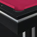 The Ajax Billiard Table is the centerpiece of your game room. This table is constructed with black laminate veneer that surrounds the table and has accents of a white laminate stripe for a modern look. Taking it a step further, the burgundy table felt provides fresh update to the standard green table felt. Six molded pockets, line outer edge of the table for game play. Included with the table are one set of billiard balls, cue ball, felt brush and racking triangle. So, call your family and friends over for an exciting game of eight ball! Features: • Standard Billiard Table • Burgundy Table Felt • Rubber Bumpers • Six Black Pockets • One Set of Billiard Balls with Cue Ball • Felt Brush • Black Racking Triangle • Ship in One Box Dimensions: Depth: 47.0" x Width: 84.0" x Height: 31.0" Weight: 207.0 lbs.