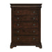 The Cameron Cherry 5-Drawer Chest is the perfect addition to your bedroom! This beautiful vertical chest comes with five, spacious drawers and one hidden drawer, perfect for neatly storing away your belongings. The bottom drawer features a dust proofing layer to help protect your belongings, while the top drawer is felt-lined for your more delicate items. Dark pewter drawer knobs complement the dark, cherry finish perfectly on this traditional chest of drawers. Sleek, clean lines and bracket feet complete the look of this stylish chest. Features: • Traditional Cherry Finish • Spacious 6 drawer chest including the felt lined hidden top drawer • Drawers feature f l extension metal side glides • with built in stops. Dust proofing on bottom drawers for added protection • Antique brass decorative knobs Dimensions: Depth: 18.0" x Width: 40.0" x Height: 56.0" Weight: 163.0 lbs.