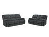 - Sofa and loveseat are dual-sided recliners; sofa’s middle seat remains stationary