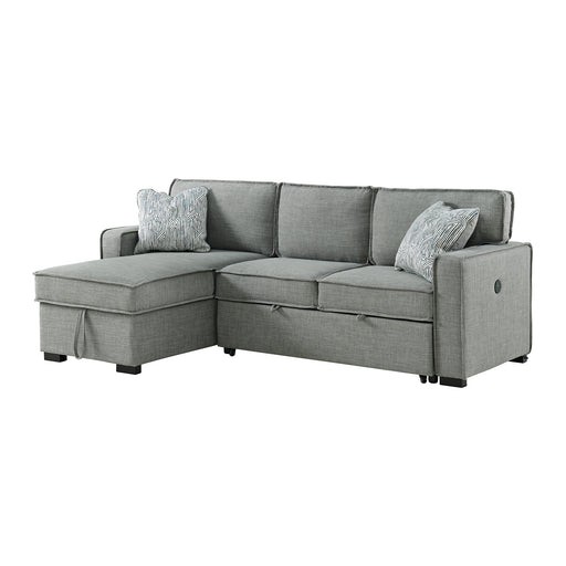 Caracas Sectional Sleeper Chofa with Pull Bed, Drop Table & USB in Palmer Grey